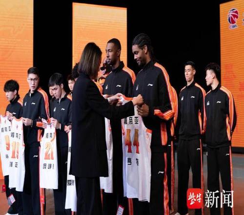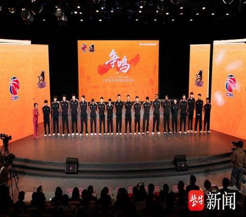 现场授旗环节中,江苏省体育局篮球运动管理中心主任胡卫权将象征队伍使命与荣誉的旗帜郑重授予队长吴羽佳和蒋浩然。在主持人的带领下,全体队员和现场观众一起大声喊出“江苏江苏、战⽃战⽃!”洪亮的口号声响彻全场,展现了全队上下齐心、剑指新赛季的决心。
