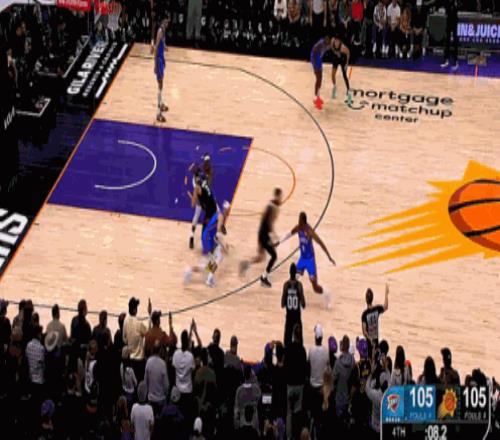 最后8.2秒,奥尼尔成功解决了世界性难题——边线发球。布克接球后,手握雷神之锤,面对雷霆俩个疯狗式防守的卡鲁索和多特,3分线外强行干拔,一剑封喉,绝杀雷霆。