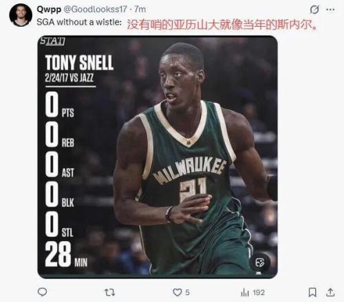 他替补出战30分钟47秒,16投9中,三分13投8中,射下了26分4篮板