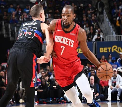 关键乌度卡没有太多应变手段,球队进攻端又开始下滑。回顾一下比赛,开场杜兰特就单打坎宁安,申京运球失误,此后阿门和申京轮流上篮,小贾失误被哈里斯反击暴扣,杜兰特早早陷入两犯危机,中段申京开始强攻,泰特命中三分球。后半段坎宁安连续单打,谢泼德突破抛投+造三分犯规,节末杜兰特续上三分,第一节火箭28-20活塞。进入第二节,杜兰特继续扔三分+跳投,活塞依靠詹金斯回应,联合艾维弹无虚发,轻松反超比分!杜兰特下场后,申京和阿门开始造犯规,后半段杜兰特三分+暴扣也找回手感。