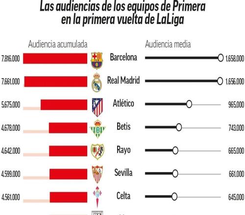 据《马卡报》报道,巴萨在电视收视市场上占据主导地位,上半赛季其联赛收视率排名领先。