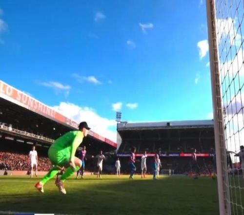 迪恩亨德森下半场戴帽子守门,被芒特进球后把帽子摘了